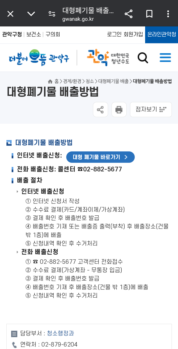 # 관악구청 대형폐기물 배출방법