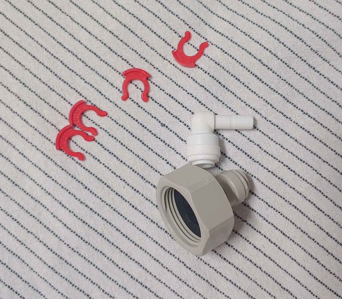 - 안전클립은 꼭 필요한가 싶다. 정수기호스가 이중인데 이중이 아닌 부분에서는 헐거워서 흘러내린다. 그래도 샀으니까 끼워넣기는 했다.