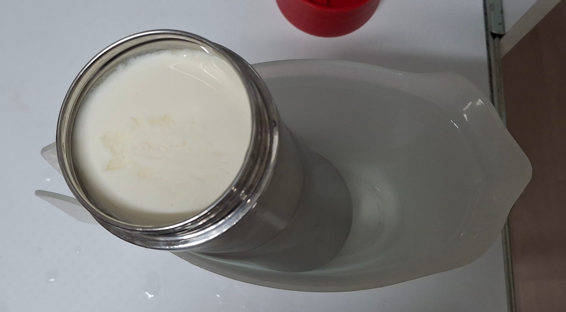 - 이 방법으로 만들면 우유를 전자렌지로 데우지 않아도 된다. 끓인 물에 넣는 거지만 우유가 실온 상태라 유산균이 죽을 정도로 온도가 올라가지 않는 것 같다.